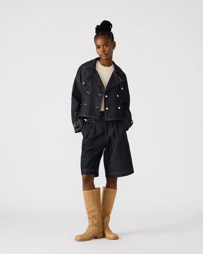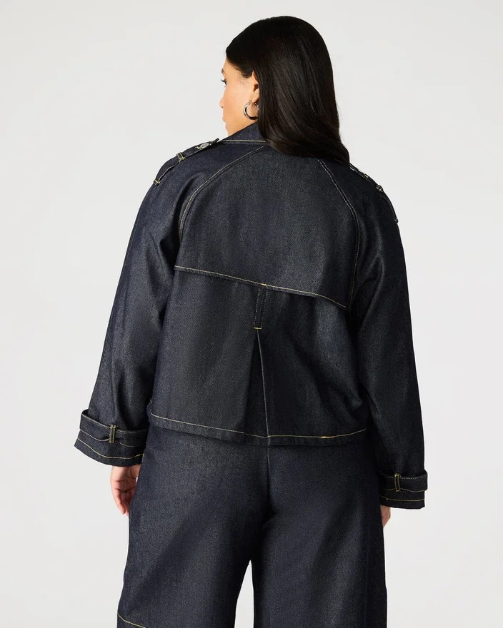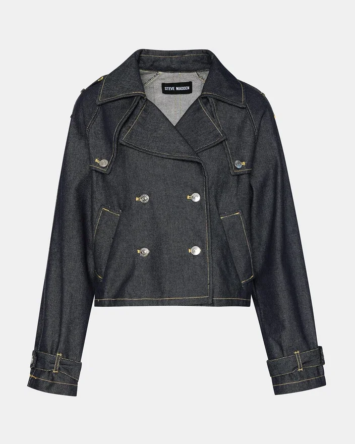 Enrichissez votre garde-robe avec la veste en jean Sirus. Ce trench court présente une coupe croisée et deux poches latérales fonctionnelles. Les deux rabats anti-vent offrent une fonctionnalité supplémentaire, tandis que les épaulettes et les ceintures aux poignets ajoutent une touche de style. Dotée d’un rabat plissé dans le dos, cette veste est à la fois pratique et chic.