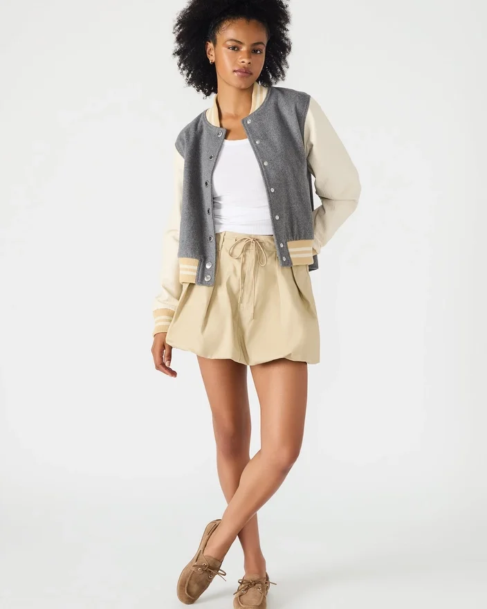La veste Rooney allie la structure classique d’une veste boutonnée au style décontracté d’un blouson aviateur. Dotée de manches longues et d’une coupe ajustée, elle offre une superposition polyvalente pour les transitions de saison. Conçue pour allier style et confort, cette veste est le choix idéal pour celles qui recherchent un vêtement d’extérieur raffiné mais décontracté.