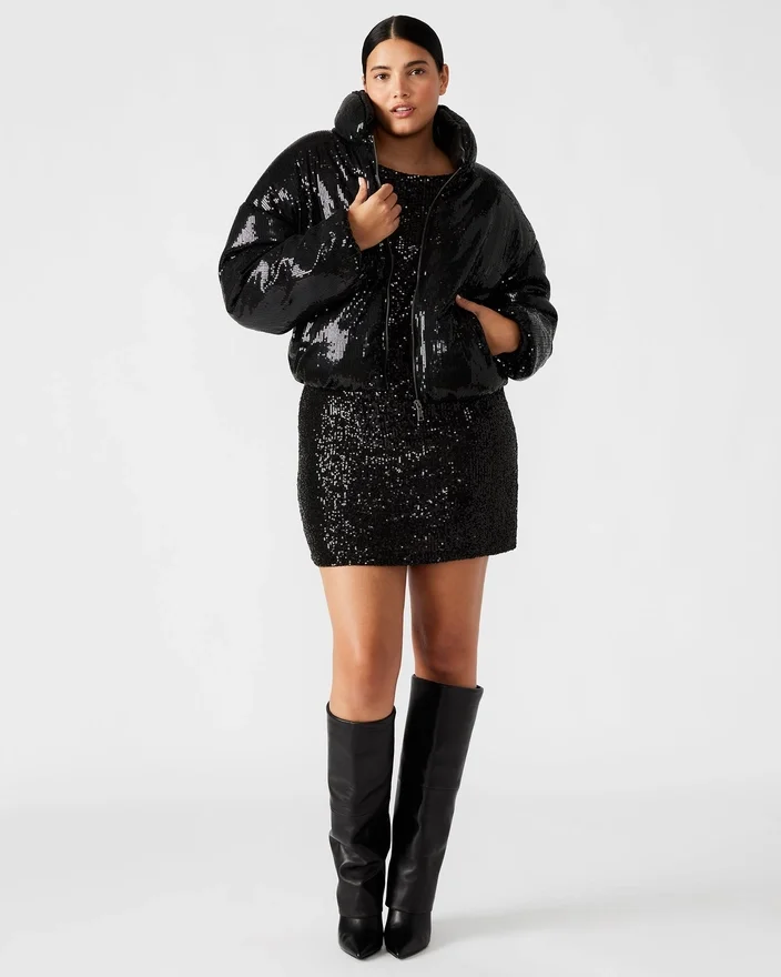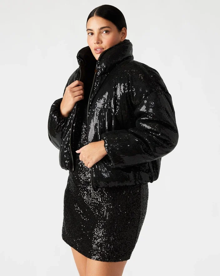 Cette veste matelassée à paillettes Stratto est dotée d’une fermeture à glissière et de manches longues. Son design élégant et ses matériaux de haute qualité offrent à la fois chaleur et style avant-gardiste. Avec sa coupe flatteuse et son design polyvalent, cette veste est un incontournable pour toute passionnée de mode.