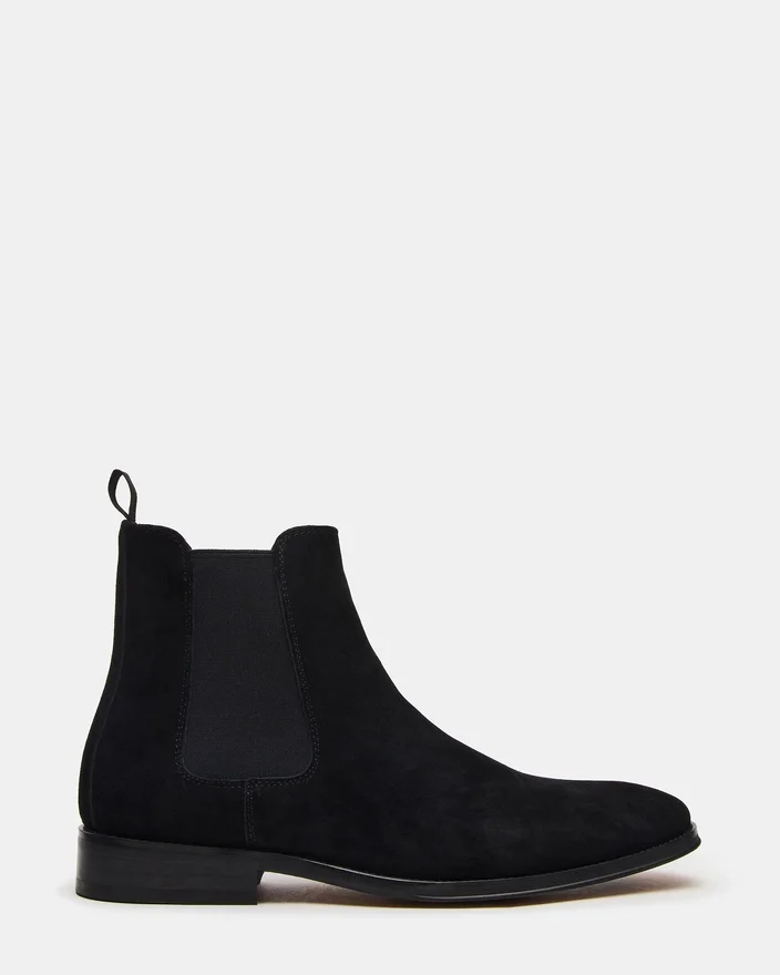 La botte Chelsea Aldair en daim noir allie un design intemporel à un savoir-faire artisanal. Dotée d’une finition élégante et de panneaux latéraux élastiques, elle offre à la fois style et confort. Sa semelle résistante assure une adhérence fiable, ce qui en fait un choix polyvalent pour les occasions décontractées comme formelles. Enrichissez votre collection de chaussures avec cette botte de fabrication experte qui allie confort et sophistication.Circonférence de la tige : 11,5 pouces