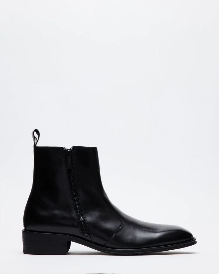 Une double fermeture à glissière, un talon bloc et un devant lisse confèrent à la botte habillée Haynes son look épuré et sa silhouette nette et définie.