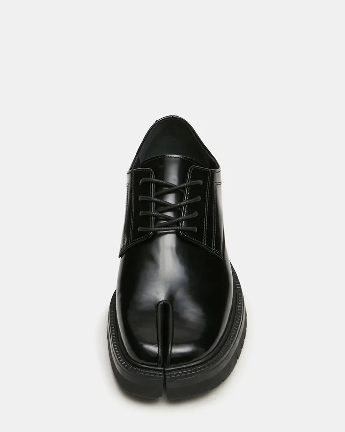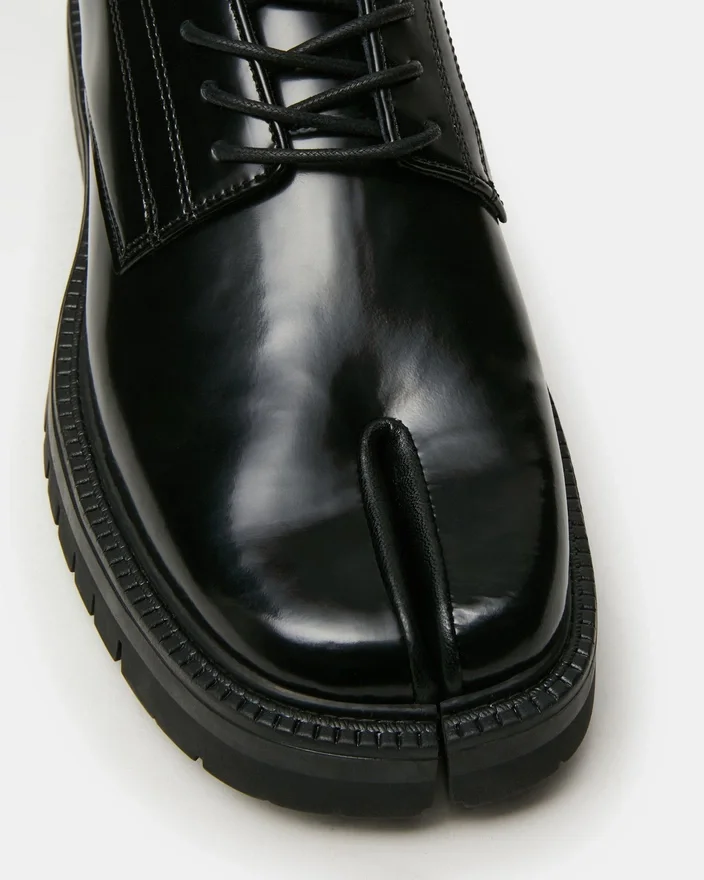 La Jaxel Black Box allie un design contemporain à un savoir-faire traditionnel, avec une silhouette distinctive à bout fendu. Cette chaussure habillée à lacets pour homme fusionne le style Chaussures Tabi avec une coupe raffinée, offrant une alternative audacieuse à ceux qui recherchent des chaussures au design architectural. Sa construction structurée et ses matériaux haut de gamme offrent à la fois un impact visuel et un confort durable, ce qui en fait un choix idéal pour les professionnels à la pointe de la mode.