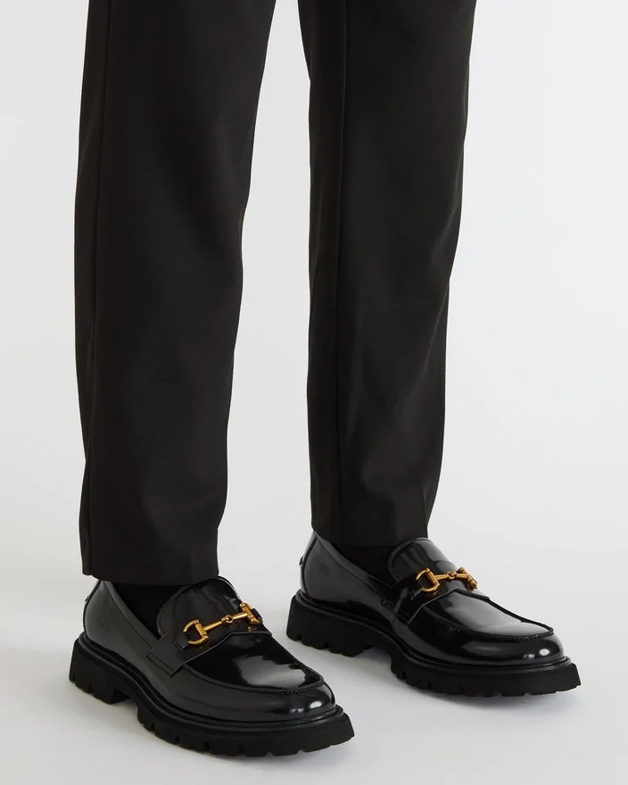 Le mocassin sans lacets Naxos en cuir noir allie un style intemporel à une conception durable, avec un logo Horsebit emblématique pour une touche raffinée. Sa semelle crantée offre une adhérence et une stabilité accrues, ce qui en fait un choix polyvalent pour les environnements professionnels et décontractés. Fabriqué à partir de matériaux haut de gamme, ce mocassin garantit un confort et une sophistication durables.