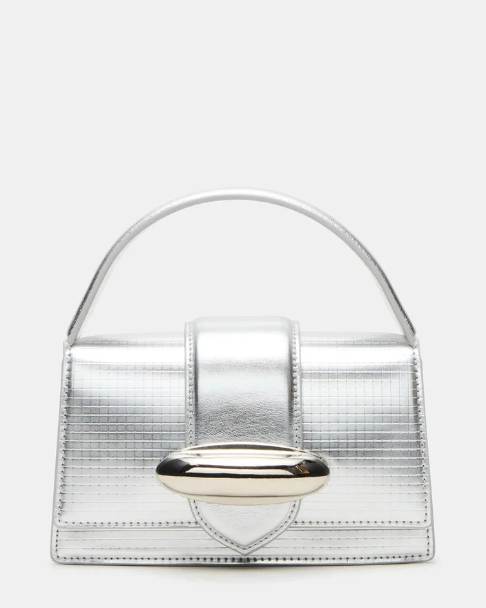 Ce sac Mishell Silver Disco est un micro-mini sac à poignée supérieure de forme trapézoïdale qui passe sans effort du jour à la nuit. Parfait pour sortir, ce sac est un incontournable pour les fêtes et les événements. Avec son style élégant et chic, vous ferez toujours sensation.