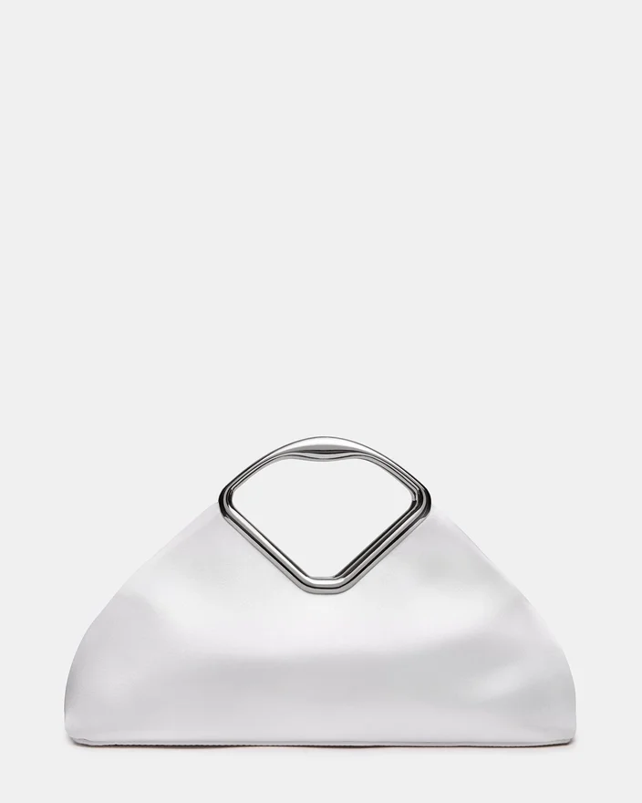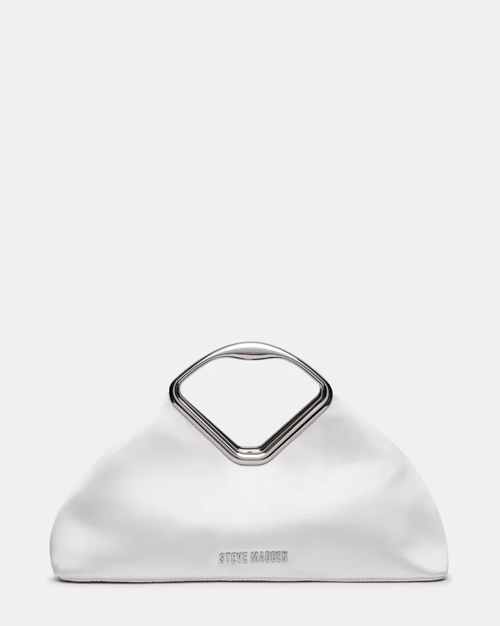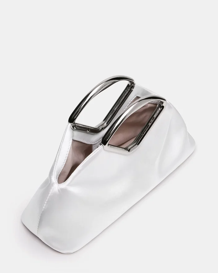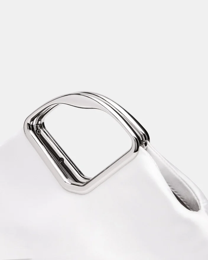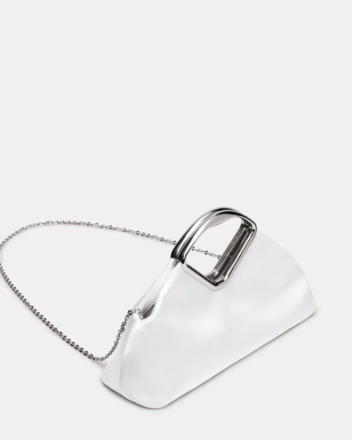 Le sac Barbara blanc allie une élégance raffinée à une sophistication pratique. Cette pochette présente une silhouette douce et arrondie aux lignes épurées et contemporaines, confectionnée dans un tissu luxueux au toucher exceptionnel. Les ferrures métalliques sur mesure offrent un confort ergonomique et un style distinctif, tandis que la fermeture magnétique garantit une fermeture sécurisée. La pochette intérieure pour cartes permet de ranger vos essentiels, et la bandoulière amovible en chaîne offre des options de style polyvalentes : portez-le en pochette ou en bandoulière pour avoir les mains libres. Une pièce intemporelle qui s’adapte parfaitement à toutes les occasions, du matin au soir.