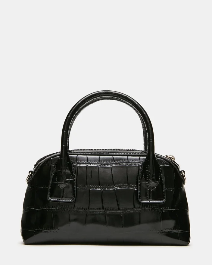 Le sac Melodie en crocodile noir est doté d’une poignée supérieure polyvalente associée à une bandoulière amovible pour un port adaptable. Rehaussé d’un charmant pendentif ours amovible et d’un foulard coloré, il ajoute une touche sophistiquée à votre tenue. Rangez vos essentiels en toute sécurité grâce à la fermeture à glissière, tandis que la pochette intérieure sur la paroi arrière offre un rangement organisé pour les petits objets. Ce sac allie des accents élégants à un design pratique, parfait pour un usage quotidien raffiné.
