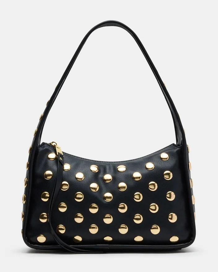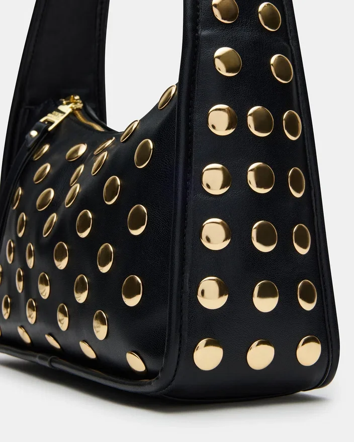 Le sac Cheyann noir est un sac bandoulière de style hobo orné de clous, conçu pour allier style et fonctionnalité. Doté d’une fermeture à glissière sécurisée sur le dessus, il garantit que vos essentiels restent en sécurité à l’intérieur. L’intérieur comprend une pochette pratique sur la paroi arrière, offrant un rangement organisé pour les petits objets. Ce sac allie sans effort des éléments de design avant-gardistes à des détails pratiques, ce qui en fait un choix polyvalent pour un usage quotidien.