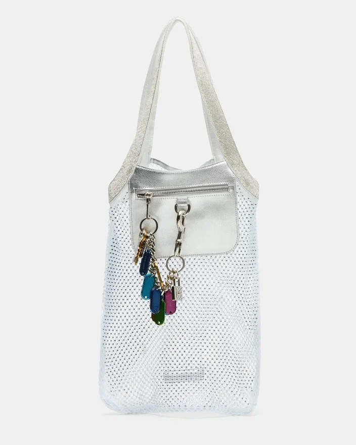 Ce sac Makia est un accessoire élégant et fonctionnel pour toutes les occasions. La bandoulière en strass cristal ajoute une touche de glamour, tandis que la poche supplémentaire à fermeture éclair offre un rangement sécurisé. La breloque en chaîne maillée avec un cadenas et des porte-clés texturés confère au sac un look unique et tendance.