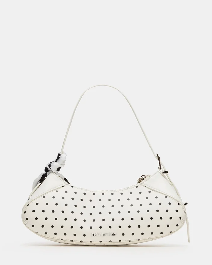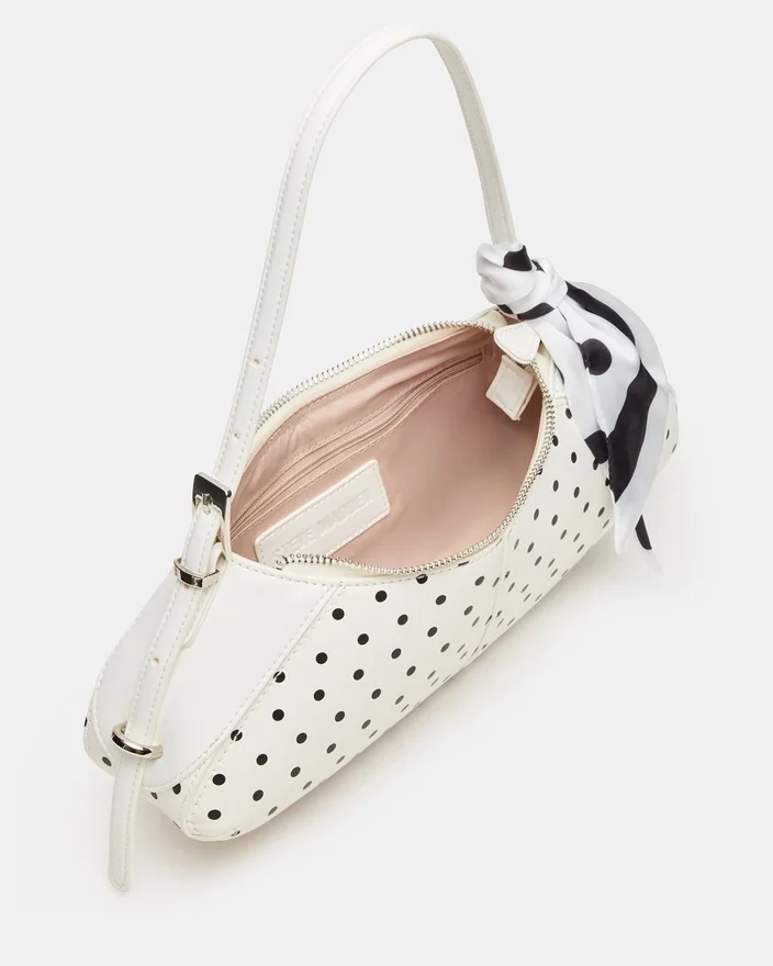 Le sac Roxey Bag Dots allie un design sophistiqué à une fonctionnalité pratique. Ce sac bandoulière en forme de croissant est doté d’une fermeture à glissière sécurisée sur le dessus et est livré avec un foulard noué amovible pour des options de style polyvalentes. L’organisation intérieure est optimisée grâce à des poches dédiées situées à l’avant et à l’arrière, garantissant que vos essentiels restent bien rangés et accessibles. Sa silhouette élégante en fait un accessoire facile à intégrer à n’importe quelle garde-robe, s’adaptant parfaitement à une tenue de jour comme de soirée.